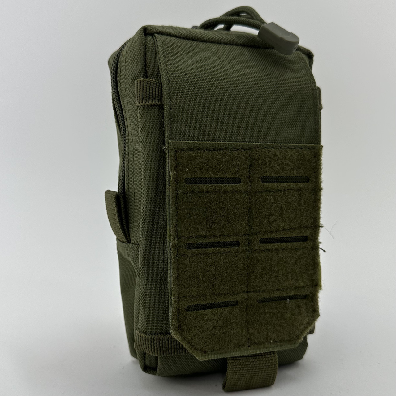 Універсальний підсумок для різних аксесуарів. Виготовлений з міцного матеріалу, який стійкий до вологи та стирання. Оснащений двома основними кишенями, що закриваються на двосторонні блискавки, та передньою кишенею для телефону.